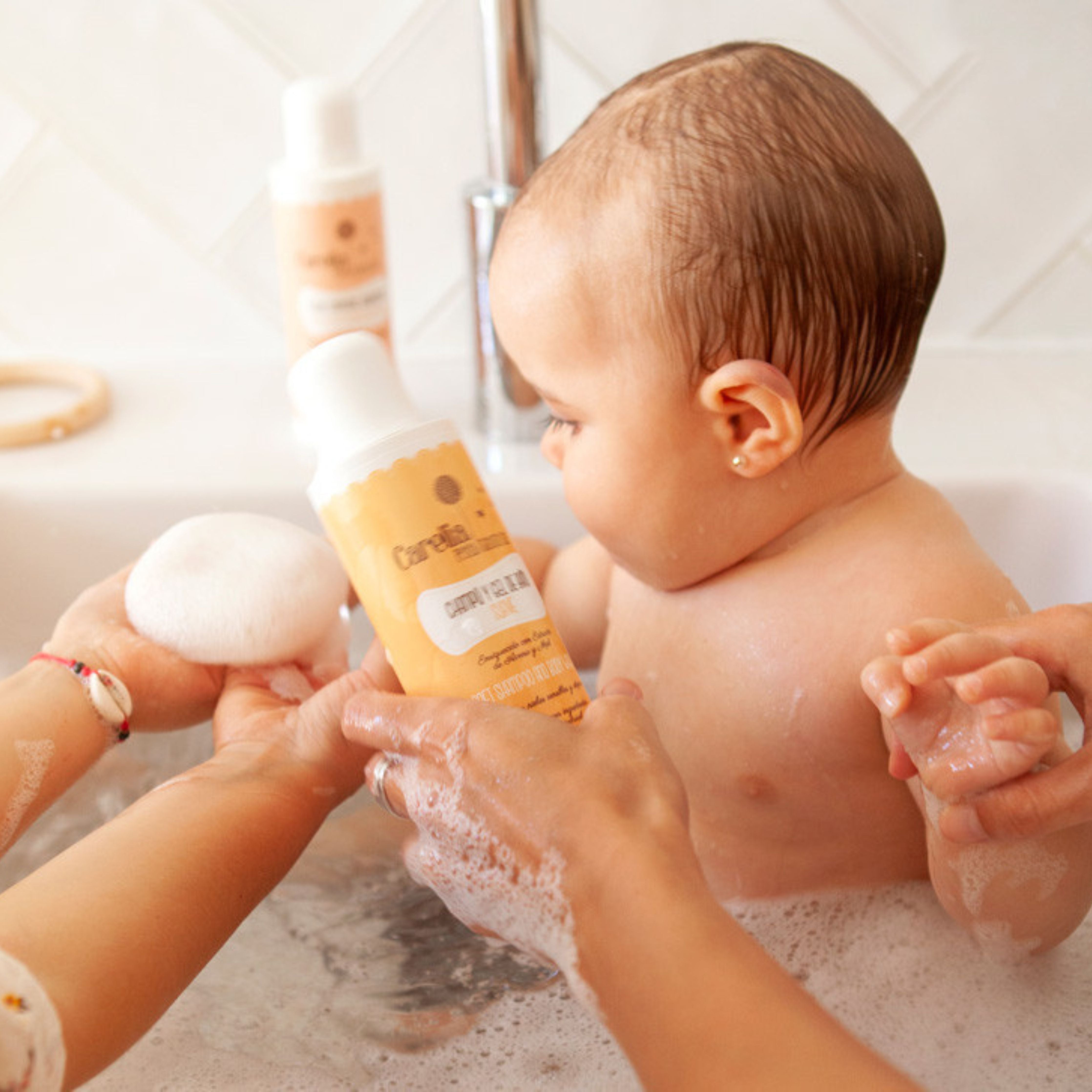 Suitable from birth, it is especially recommended for sensitive or atopic skin. Its ergonomic design fits comfortably in the hand, making it easy to use.