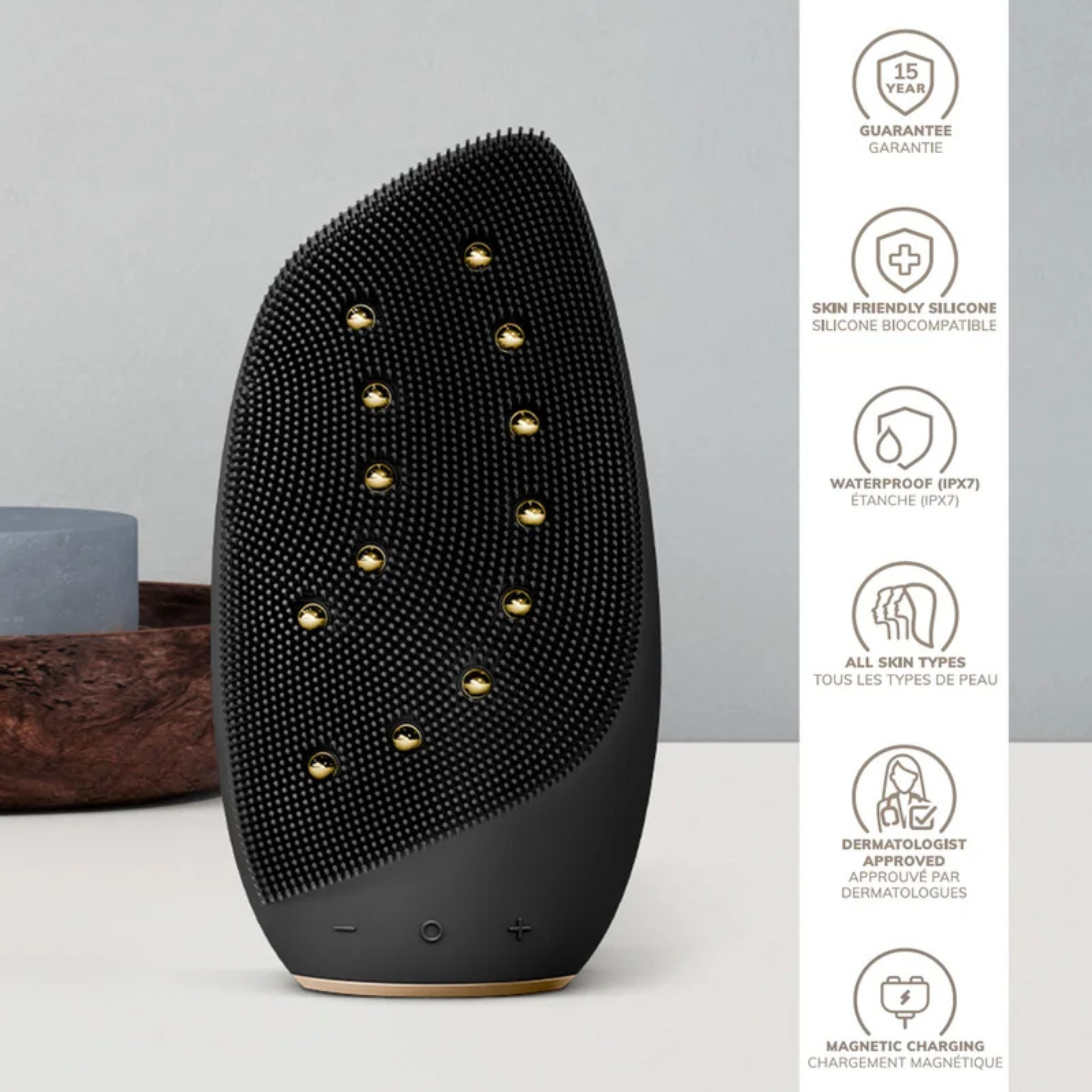 El dispositivo incorpora perlas térmicas integradas en las cerdas frontales (Pore-Opening Deep Warming Technology), que ayudan a abrir los poros y potenciar la absorción de ingredientes activos. Para un efecto lifting, la tecnología de microcorrientes Face-Lift y las esferas reafirmantes masajean suavemente la piel, mejorando la tonicidad, la elasticidad y la definición del contorno facial.